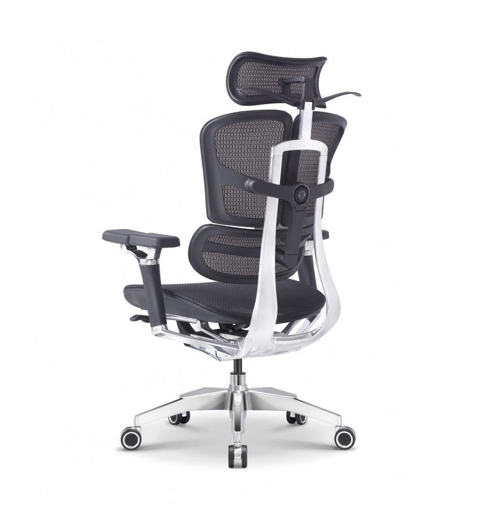 Поясничный упор кресла представляет третью , нижнюю часть спинки. Однако стоит рассмотреть его отдельно в силу уникальности. В отличие от многих современных кресел, в поясничном упоре этого кресла предусмотрена возможность серьезной регулировки упора под конкретного пользователя. Поясничный упор можно поднять-опустить, выдвинуть вперед или наоборот задвинуть, а также можно изменить жесткость. Кроме того поясничный упор достаточно гибкий и следует за вами при повороте туловища.